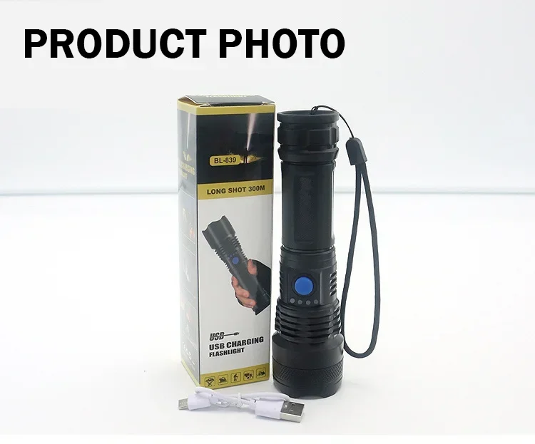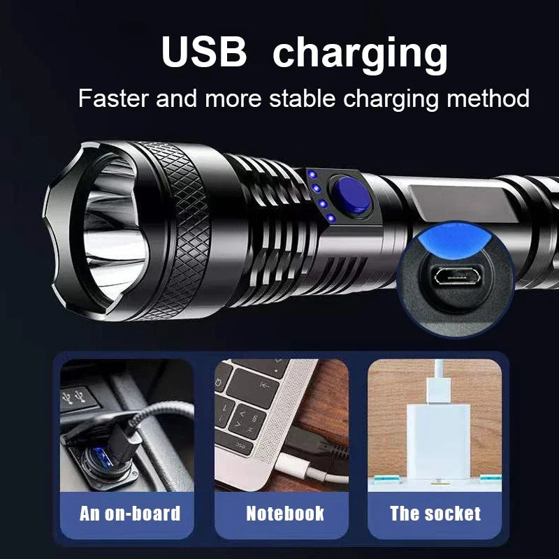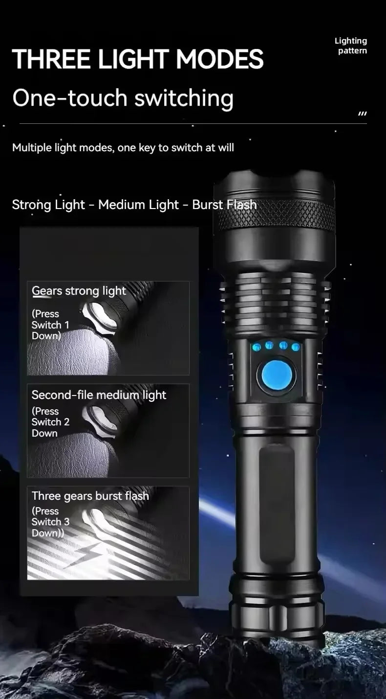 High Power LED Tactical Flashlight Rechargeable Light Bright Telescopic Zoom Handheld Hunting Torch Light for Emergency Hiking
