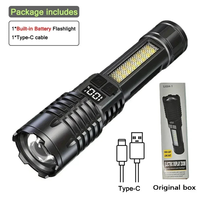 Built-in high-power and large-capacity battery, supports ultra-long use time, no need to worry about the flashlight not being able to be used for a long time